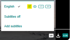 - Move your cursor over the video player and click the subtitle icon at the bottom right. This will open the menu for managing subtitles.