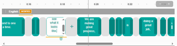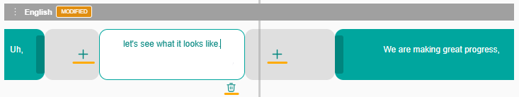 - To edit the text, you can click on the green box. It will turn to white and a typing cursor will appear. You can edit the text and click anywhere to save your changes. After making a change, the track is labeled as MODIFIED.