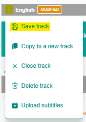 - Once you have finished editing your subtitles and are happy with the changes, you can save the track by clicking on the menu button/three dots on the top left of your track and selecting Save track.