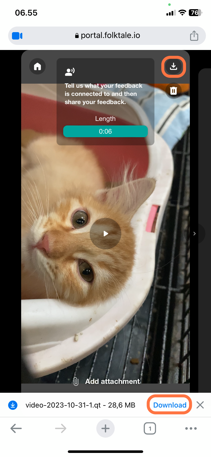 As an additional safeguard against losing your recorded video, you have the option to download the clip to your device. This step is recommended, especially if you're having trouble uploading your shots due to an unstable internet connection.