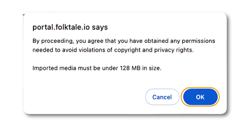 ⚠️ Important: Imported media files must be under 128MB. If a file exceeds this limit, record it directly in Folktale instead of importing it.